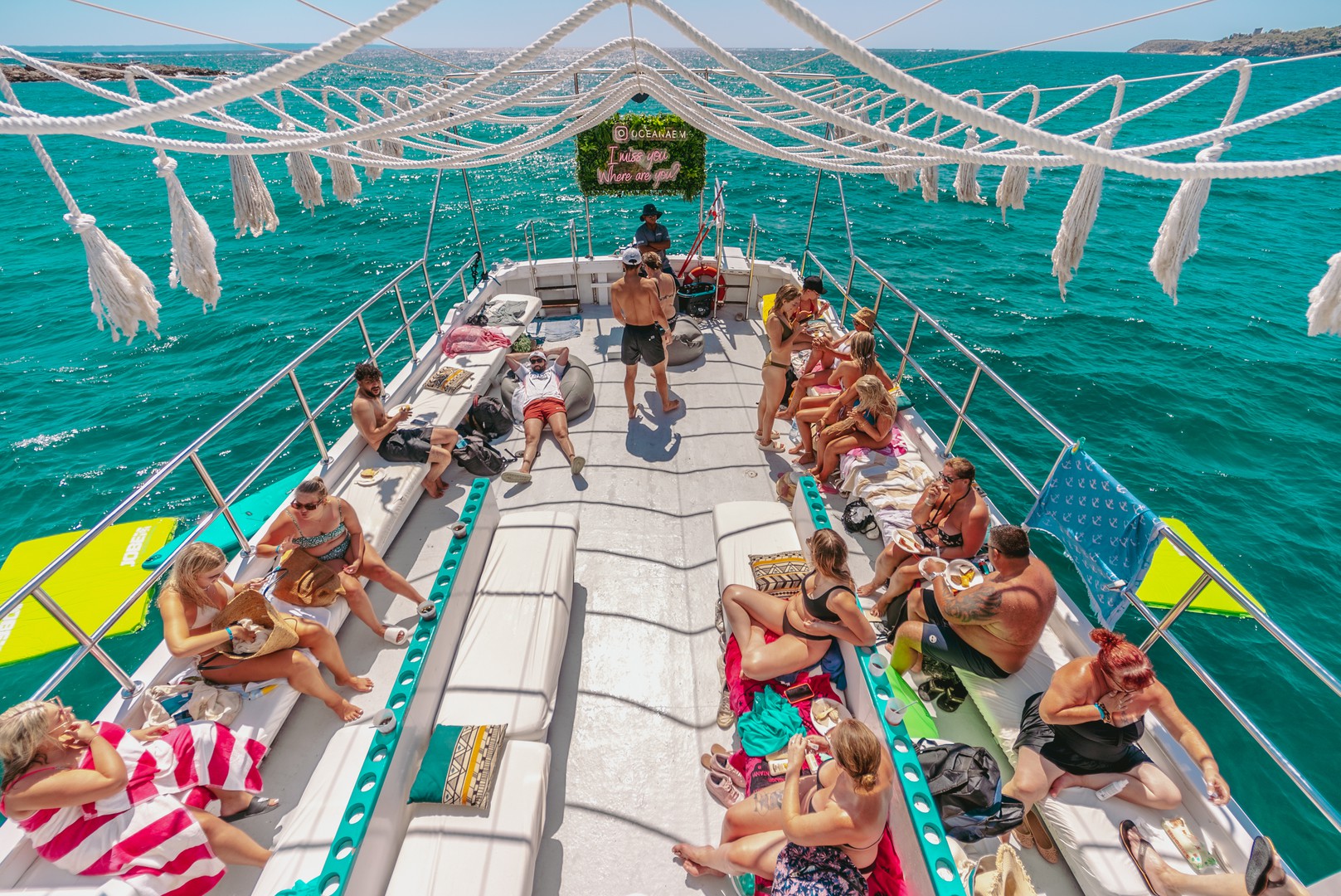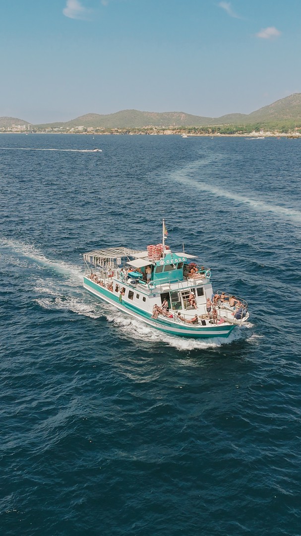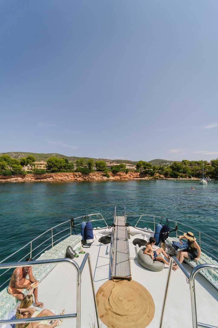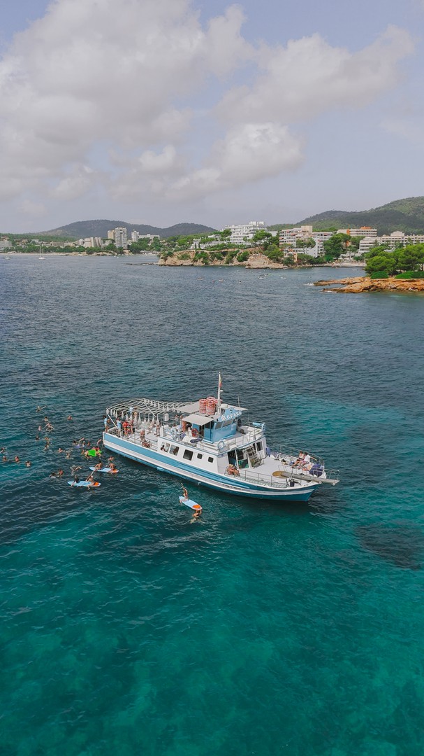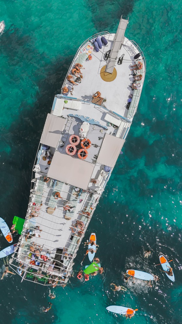 ¡Únete a nosotros para un divertido día en familia en nuestro paseo en barco! Disfruta nadando en calas turquesas y relájate en nuestra terraza con música en directo. Con actividades como snorkel y paddle surf, ¡es una aventura para todos!