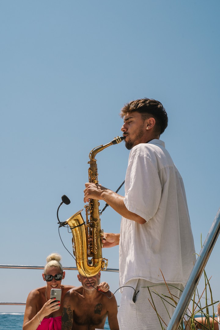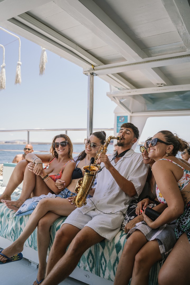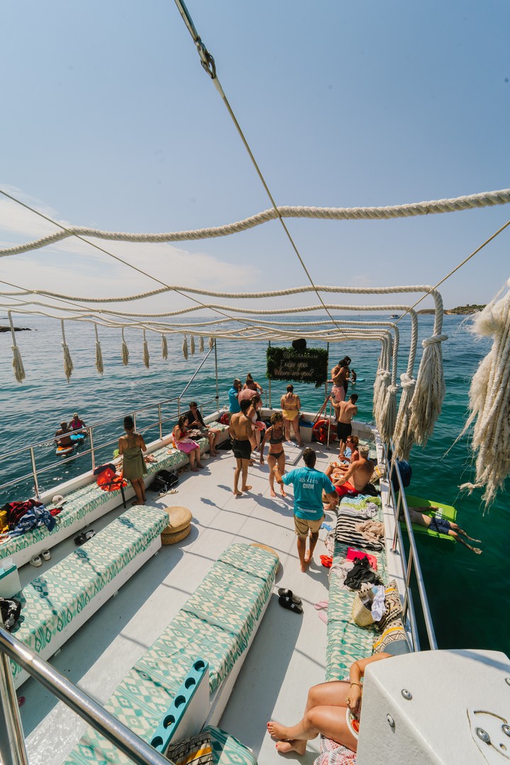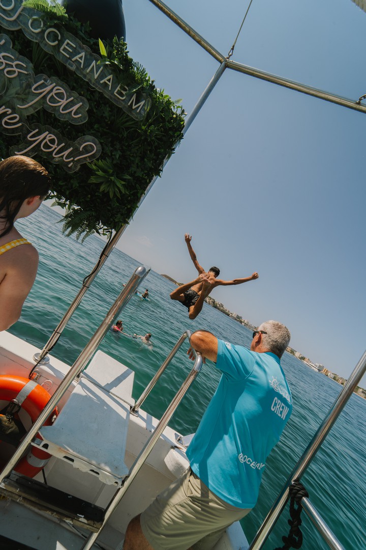 ¡Únete a nosotros para un divertido día en familia en nuestro paseo en barco! Disfruta nadando en calas turquesas y relájate en nuestra terraza con música en directo. Con actividades como snorkel y paddle surf, ¡es una aventura para todos!
